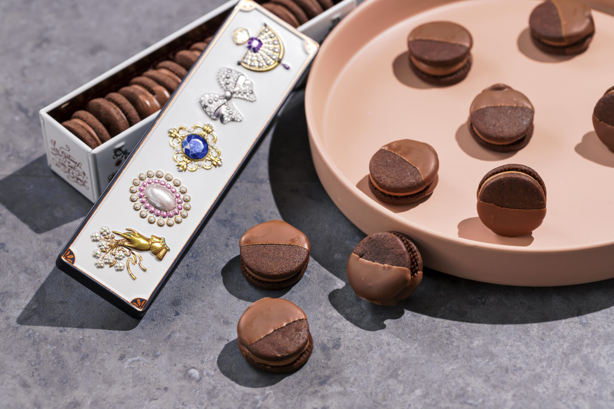 「クッカロン 1,850円」で販売中。“サクほろ食感”のショコラクッキーに、口溶けの良いプラリネクリームをサンド! 可愛い見た目&高級感を兼ね備えた、プレゼントやお土産にもってこいの商品♡