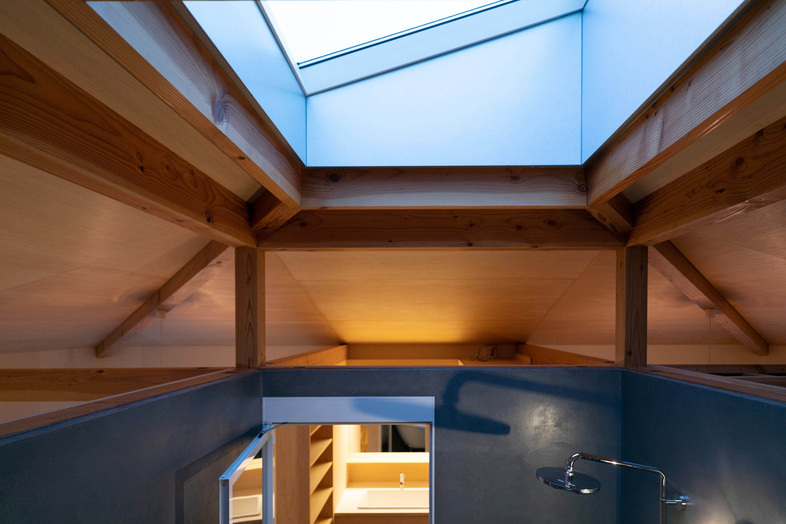 昼夜を問わず楽しめる浴室上部トップライト